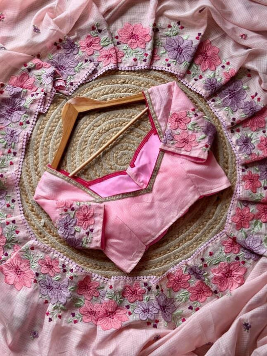 Coding work Luxe with butterfly organza saree with stitched blouse