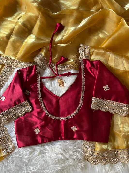 Glass Soft Crystal Sarees luxe semi Stitched Blouse