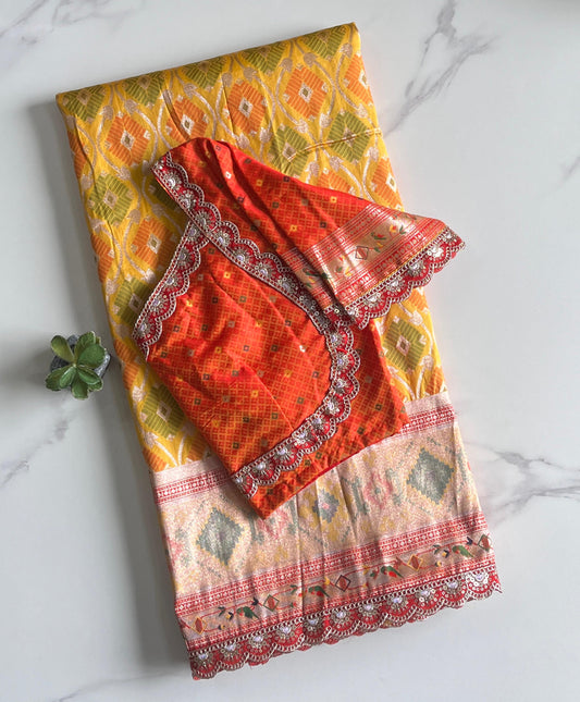 Pure space silk saree with pure Luxe coding work saree stitched blouse