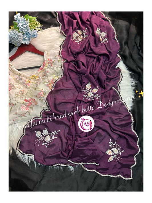 Raspberry Luxe Coctail Handwork saree with stitched blouse