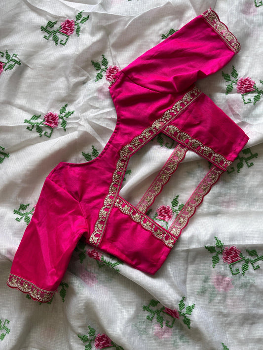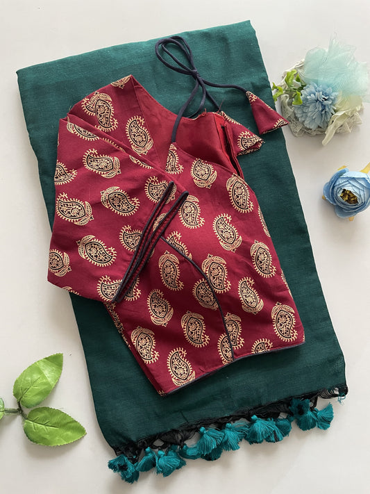 Khadi Cotton Saree with Desginer Stitched Blouse