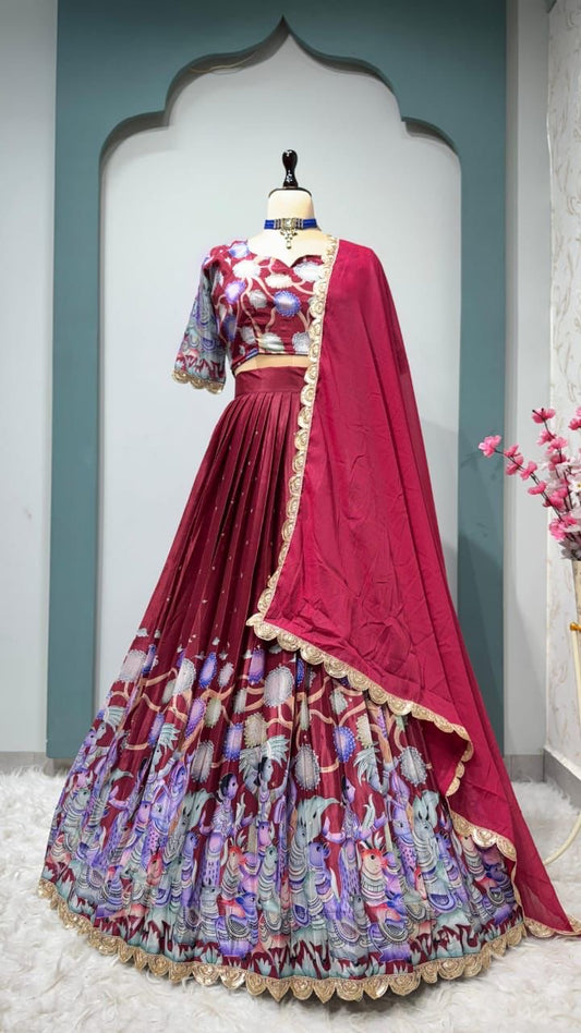 Chinnon silk Kalmkari Lehenga