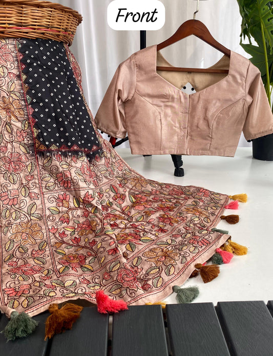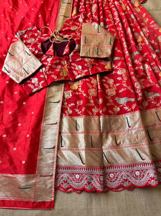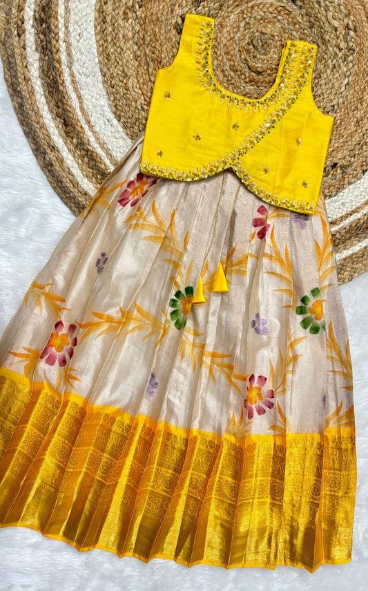 Kanchipuram semi pattu Lehenga with stitched work blouses