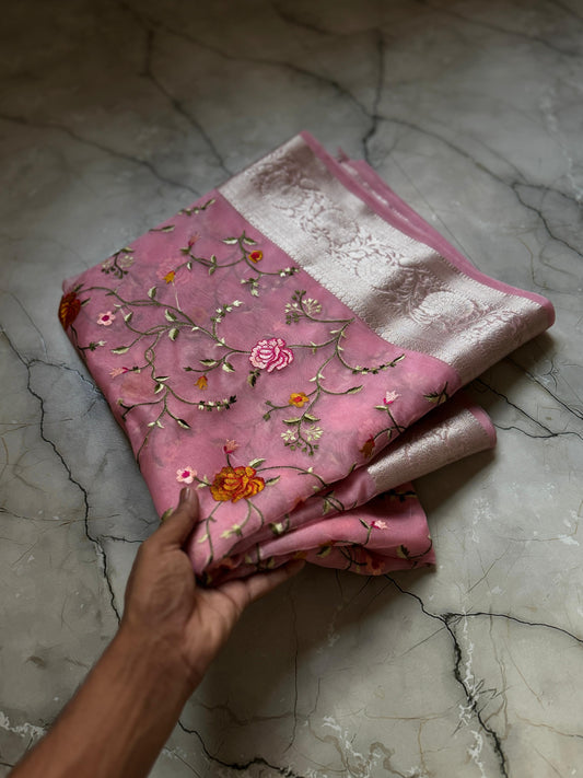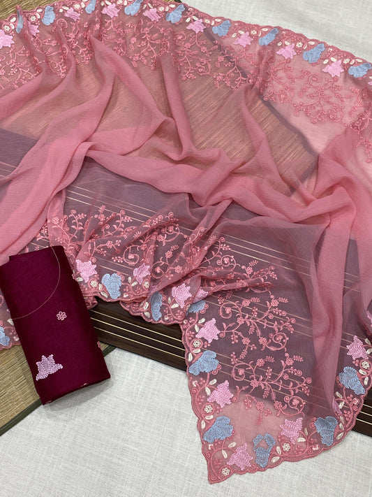 Pure Chiffon Organza Saree with embroidery work budget sarees