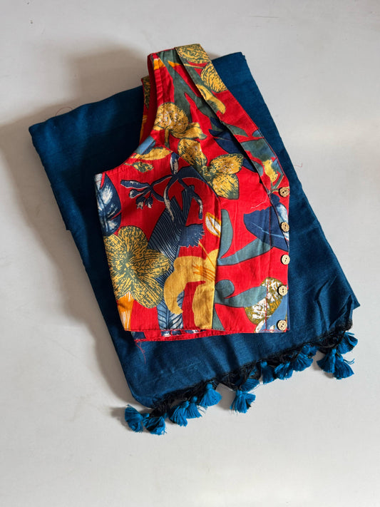 Khadi Cotton Saree With Kalamkari Fusion Blouse
