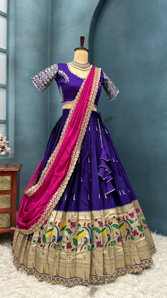 Royal Elegance in Every Pleat 👑 Dual-toned tissue silk lehenga