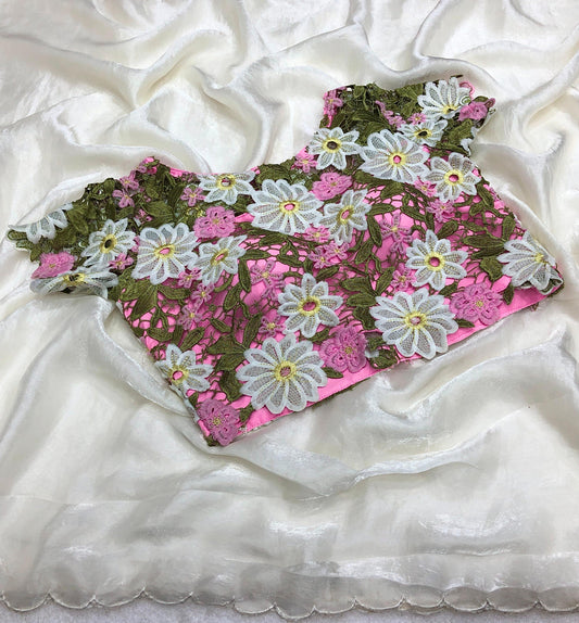 Crosya embroidery cutwork designer blosue with fendy silk saree