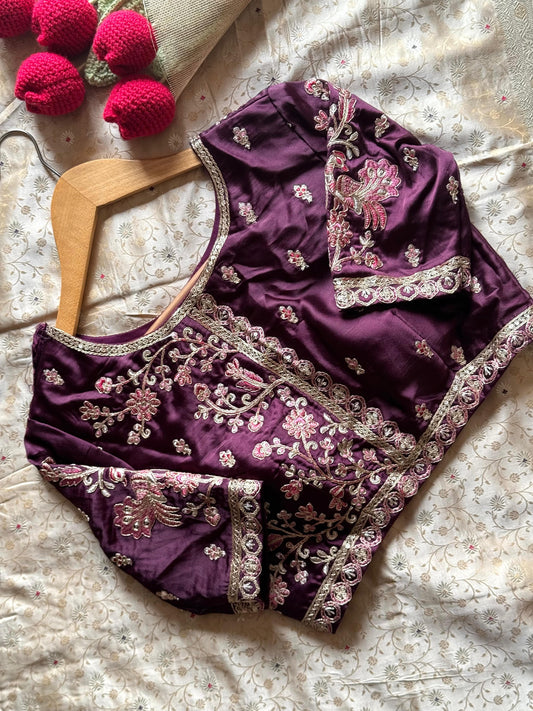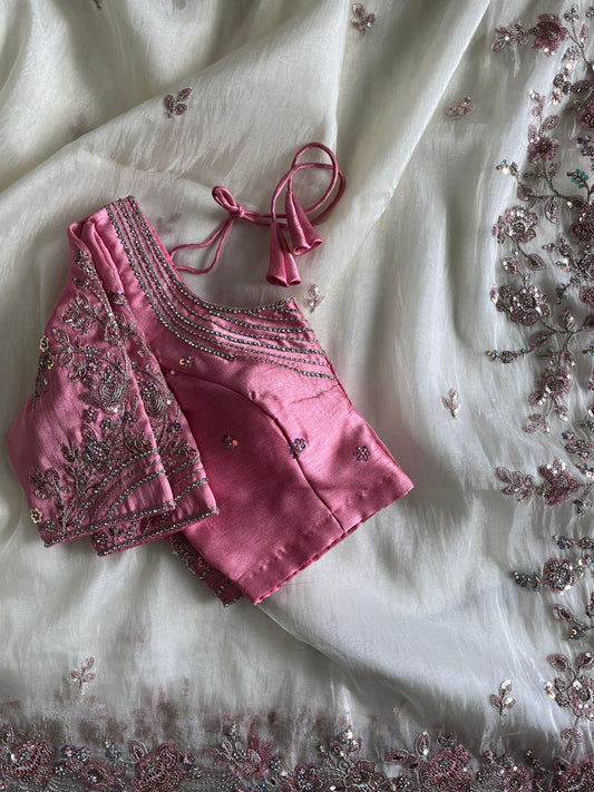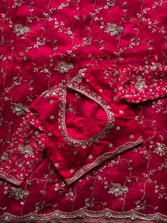 Raspberry Luxe Coctail Handwork saree with stitched blouse