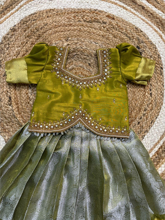 kids maggam Semi Kanchipuram Tissue Kids Pattu pavadas