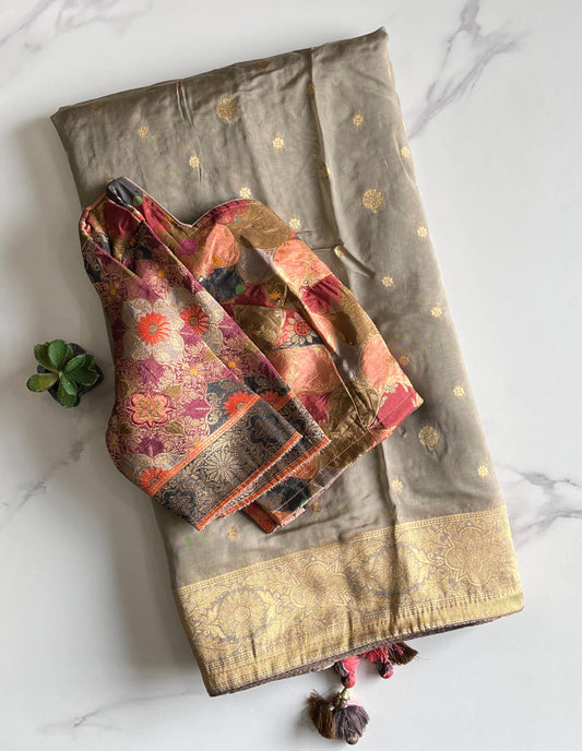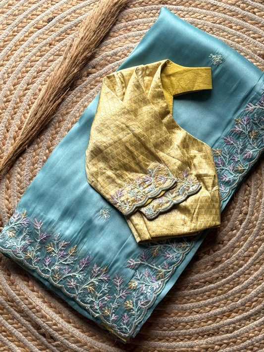 Pure space silk saree with pure Luxe coding work saree stitched blouse