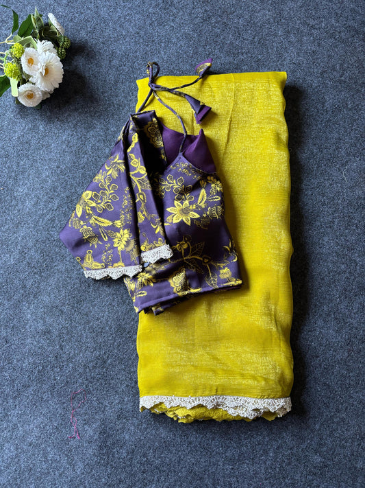 Pure Viscose raw silk with Stitched Saree blouse (Celebrate inspired)