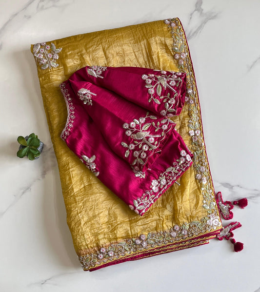 Luxe Pure Tissue sequence Codded saree with stitched blouse
