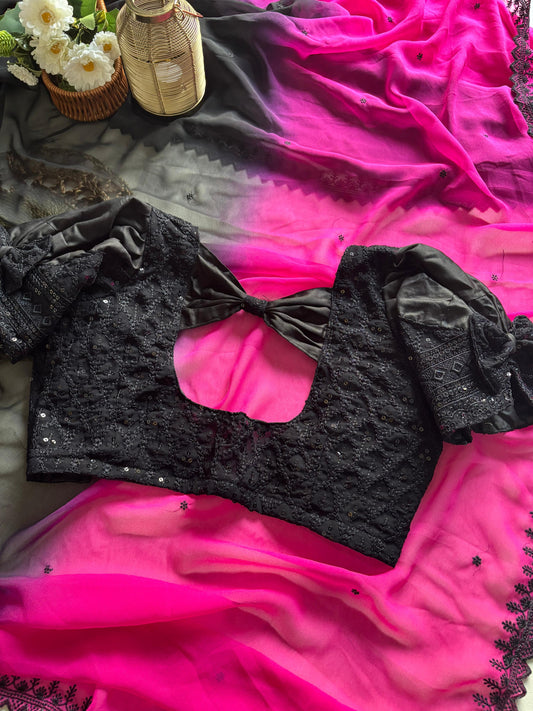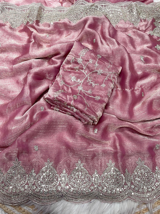 Soft chiffon silk saree with C-pallu sequins & elegant cutwork border with stitched Blouse