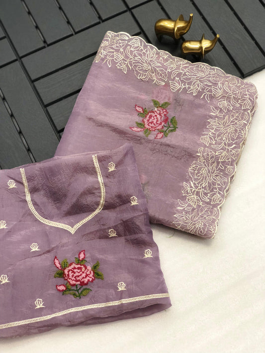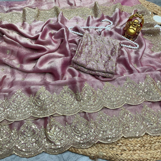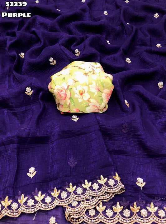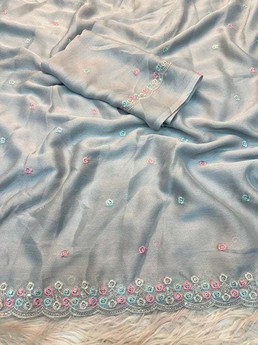 Pure Chiffon Organza Saree with embroidery work budget sarees