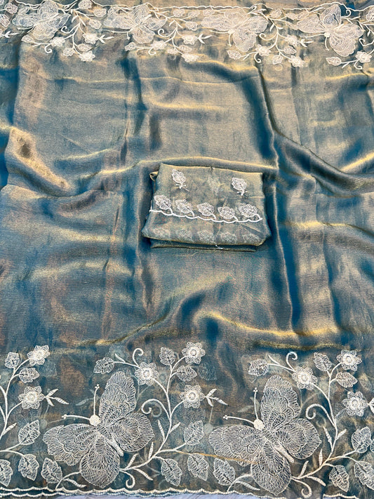 Pure Fendy chiffon saree with butterfly embroidery Budget Fancy saree