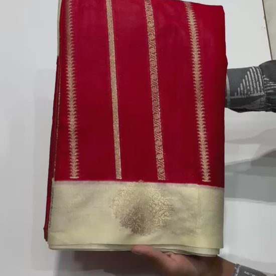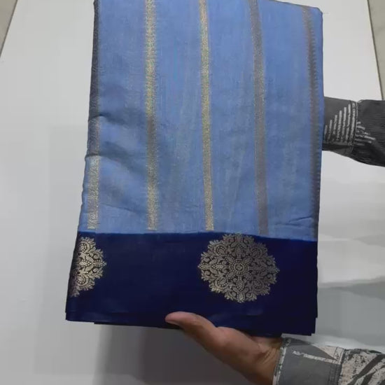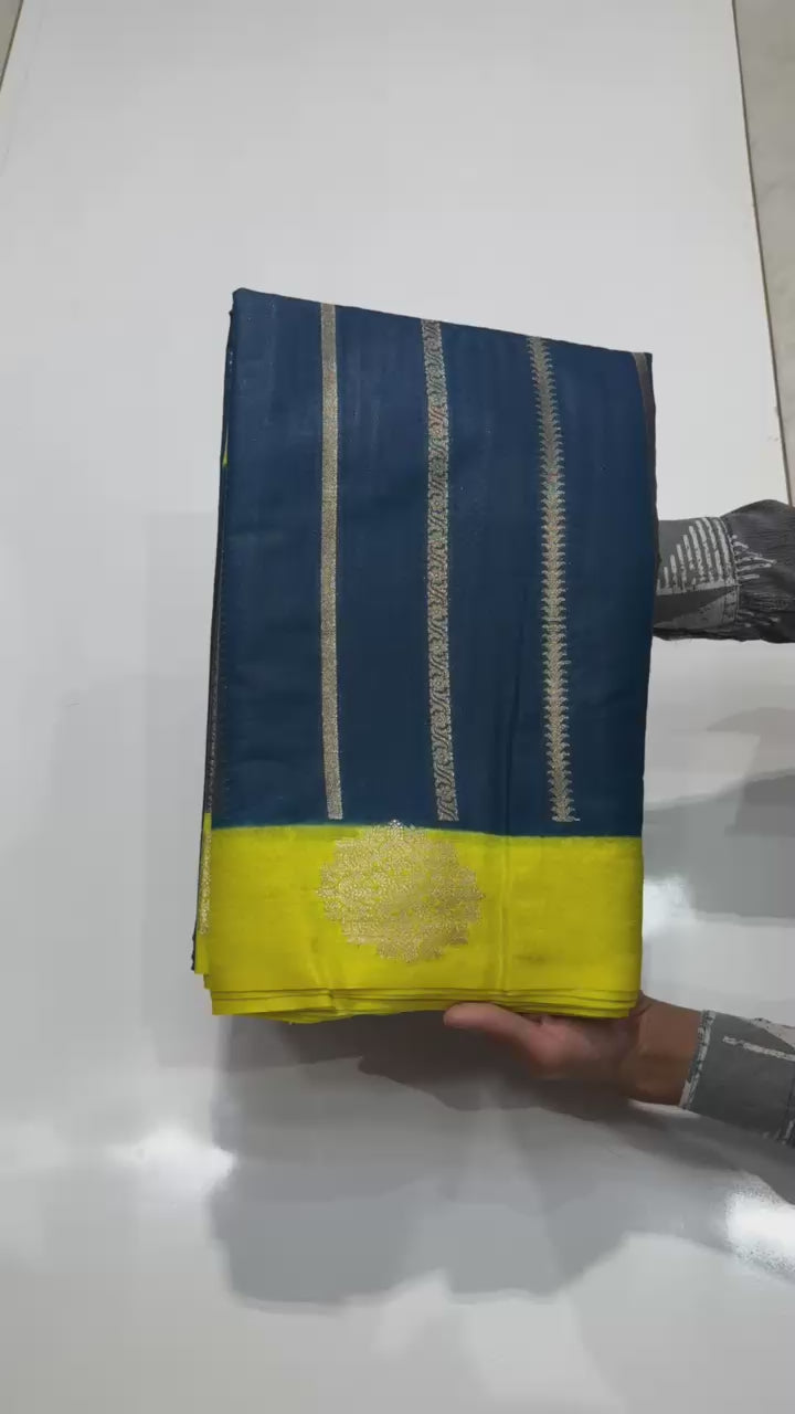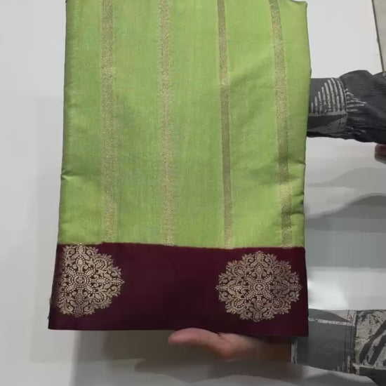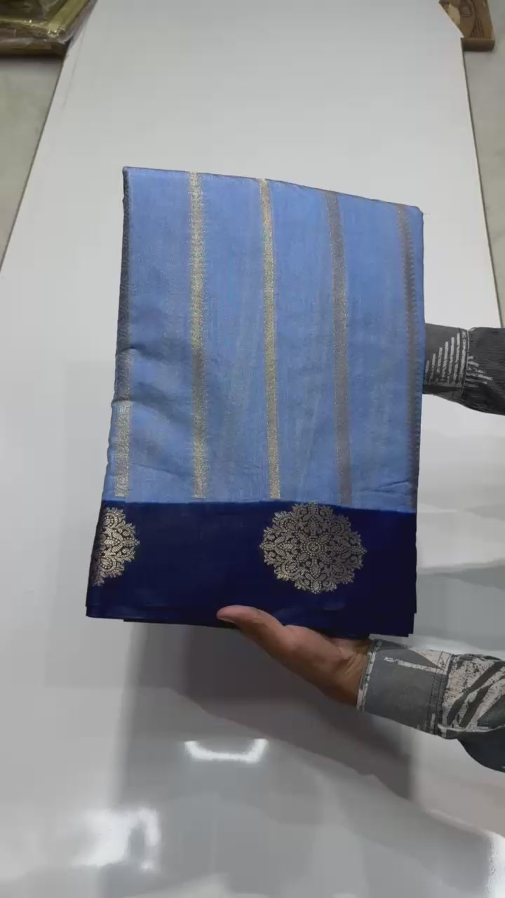 A graceful Banarasi Dyble Dupion Soft Silk Saree featuring fancy butta design weaving on the border and beautiful intricate weaving all over the body 😍