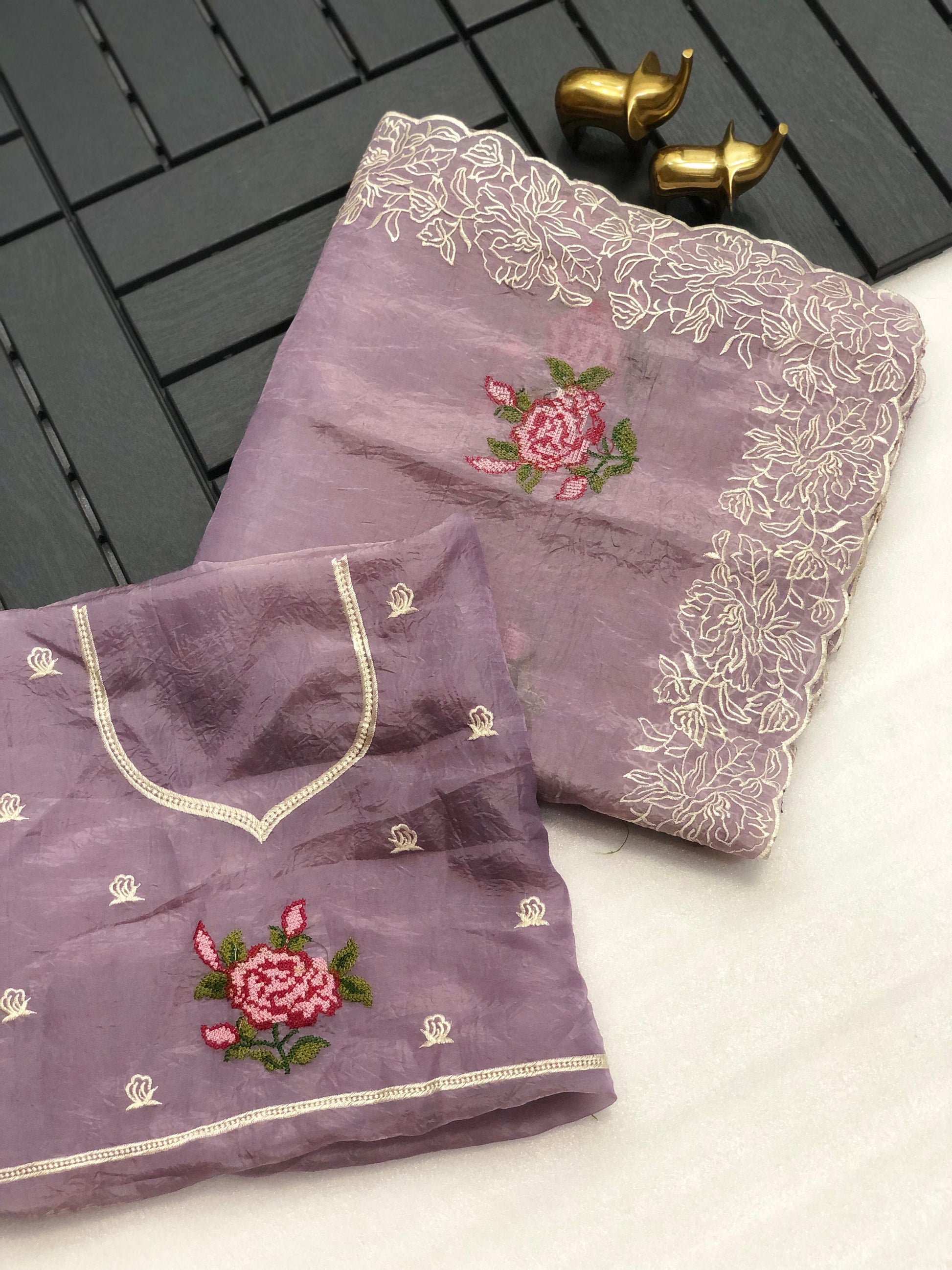 Indulge in playful elegance with our Chiffon Crush Embroidery Work Saree. This ethereal saree boasts stunning embroidery work that adds a unique touch to its chiffon crush texture. Perfect for any occasion, this saree will make you feel confident and effortlessly chic. (Double the compliments, double the fun!)