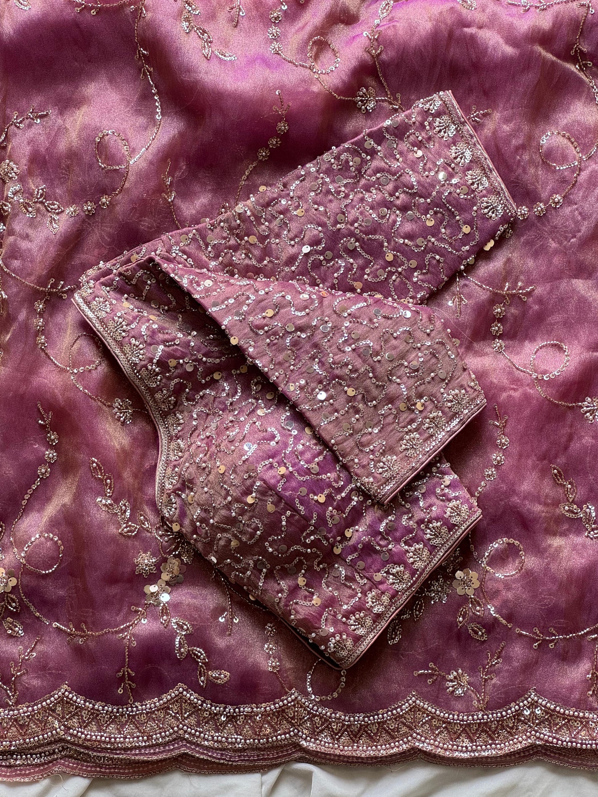 *Cocktail handwork* collections fascinated in finesse too soft organza crepe silk saree with heavy pearl sequence cutdana handwork*