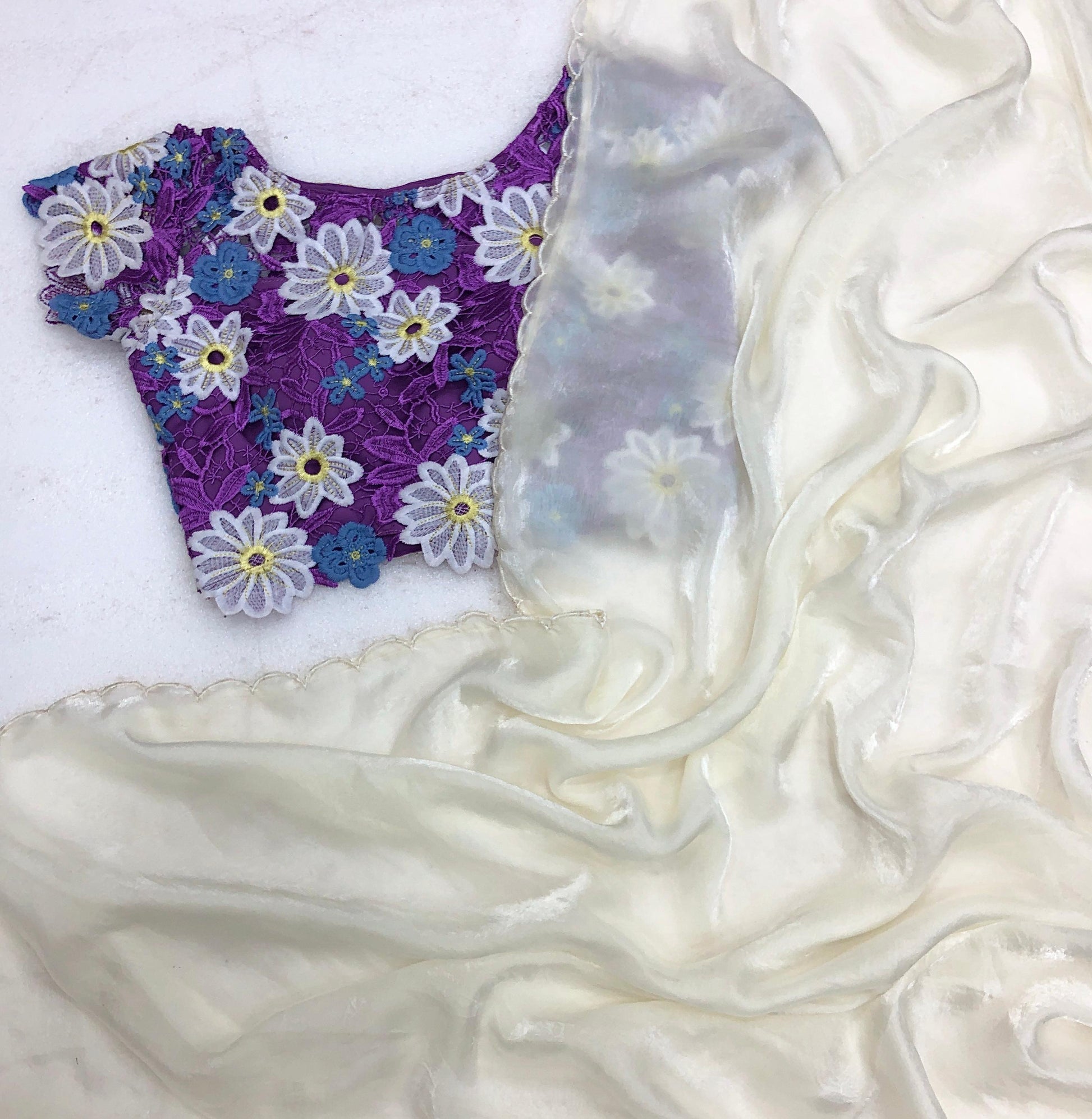 🌼 Blouse: Fancy Crosya embroidery cutwork designer blouse (unstitched)