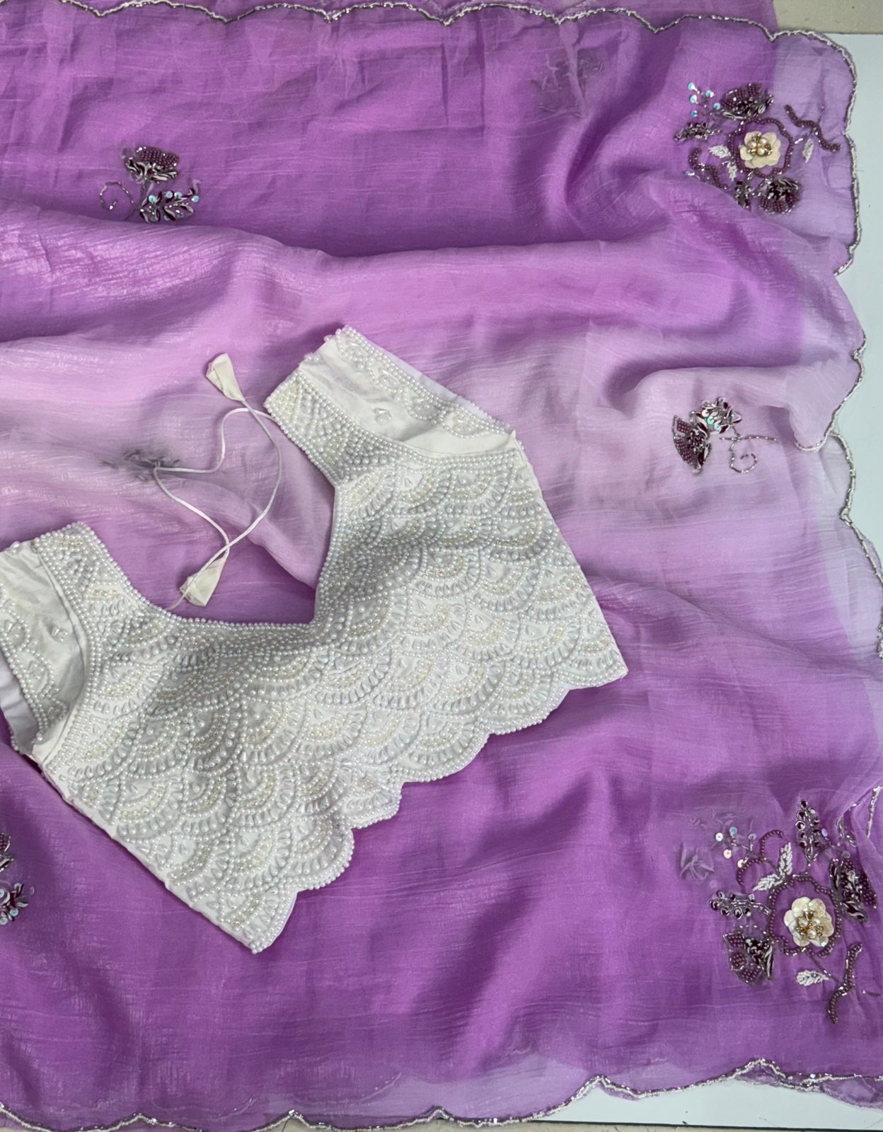 Pure soft crunchy pedding saree with beautiful handwork khatli with aarco