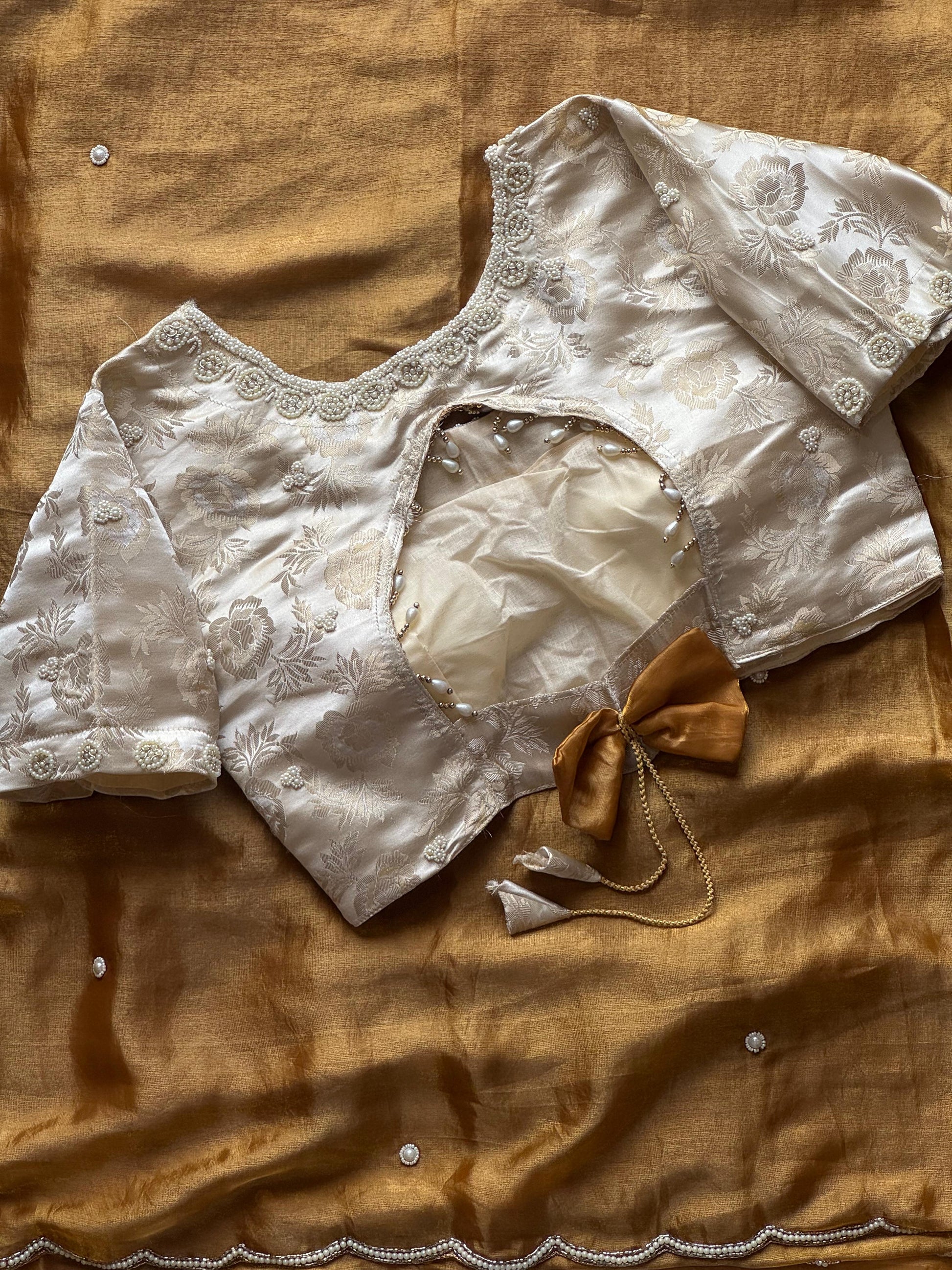 Gold peacock saree with stitched blouse
