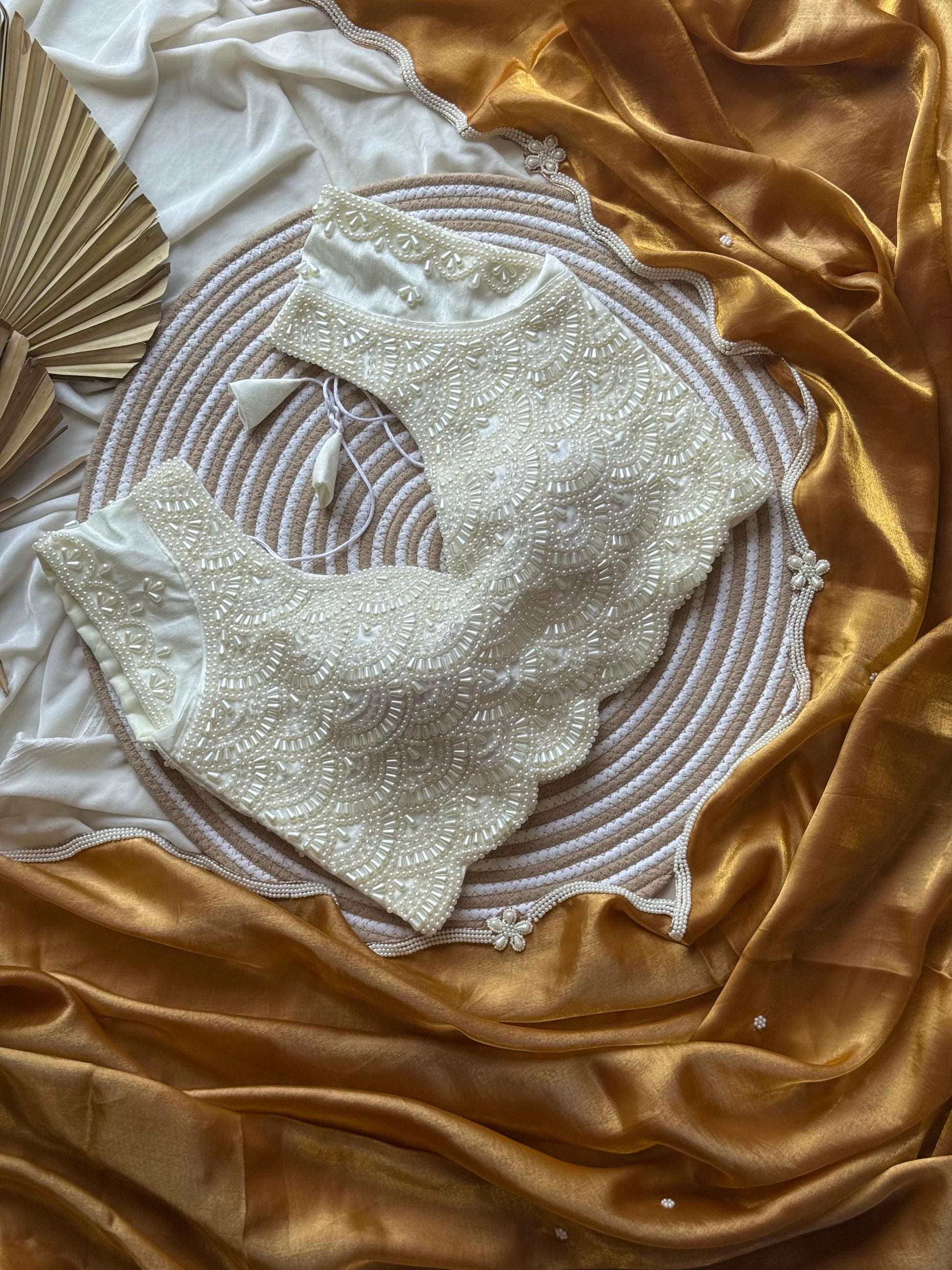Blouse :- stitched blouse fully pearls work with silver