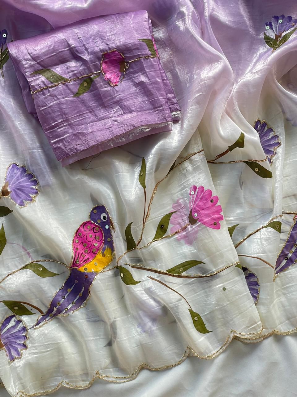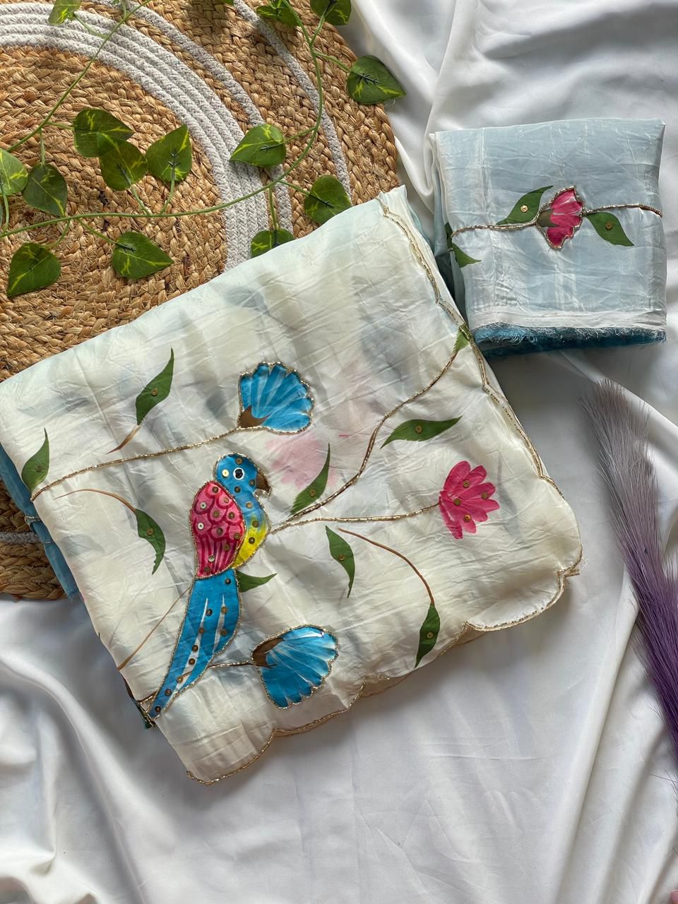 *work* :- beautiful handmade brush printed perrot design with beautiful handwork..
