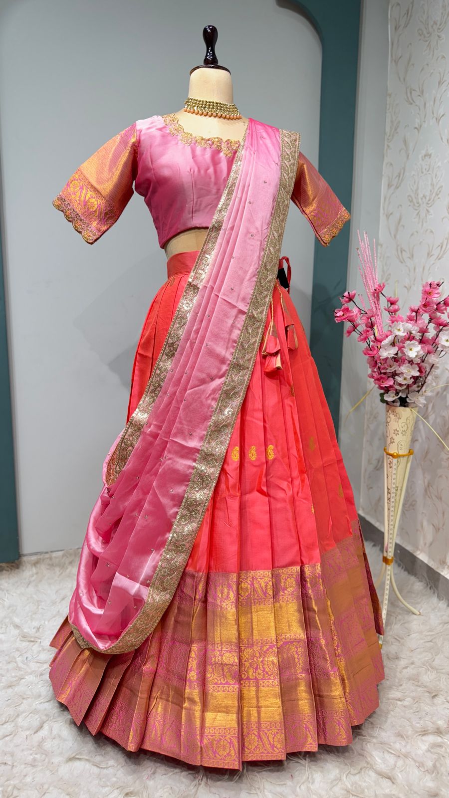 *Fabric*:- Full stiched kanjivaram silk all over butta jacquard border with fine finishing with Canvas patta
