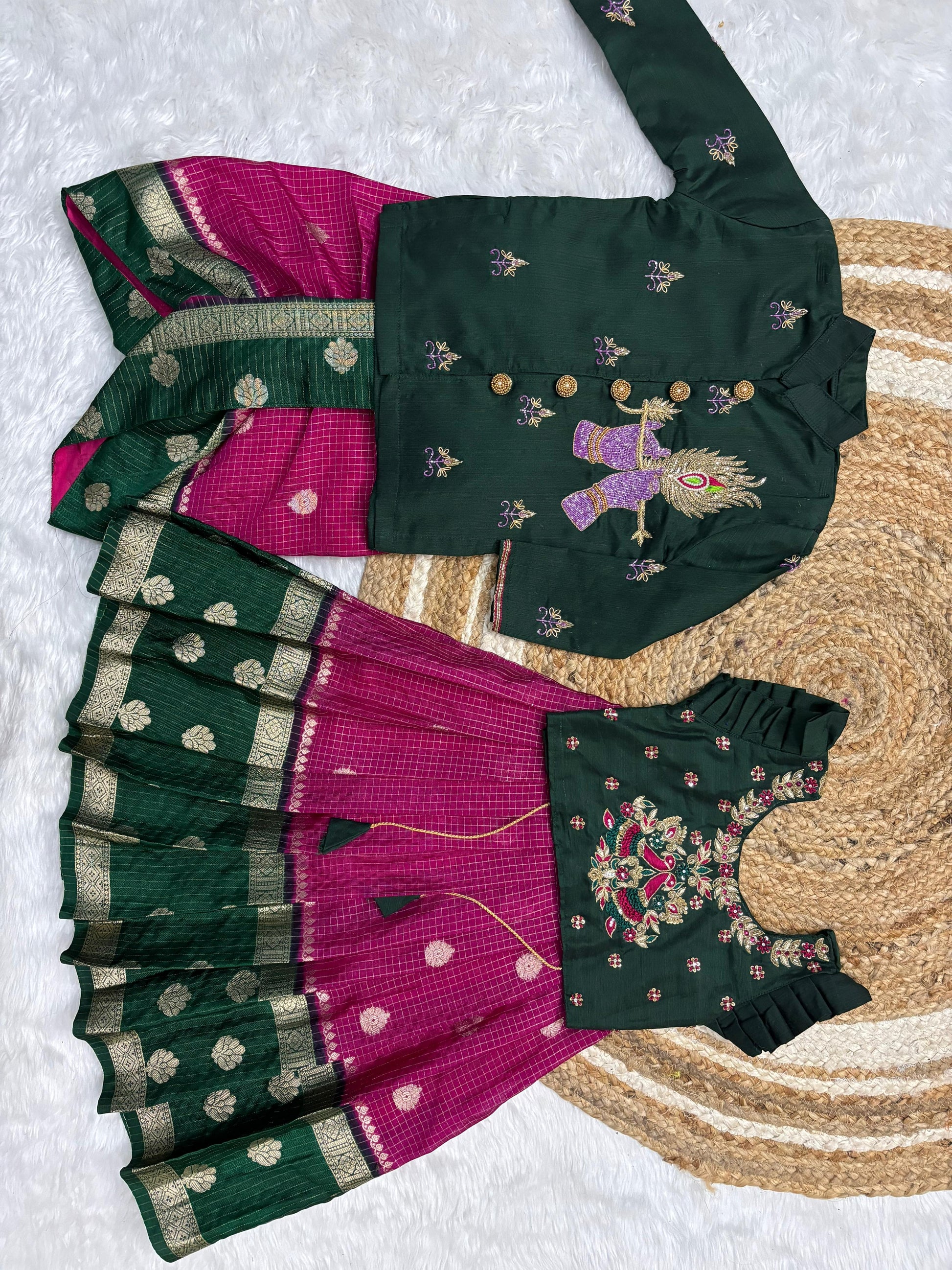 Kids Maggam Banarasi Pure Maggam work Bother kurta with dhoti and sister combo