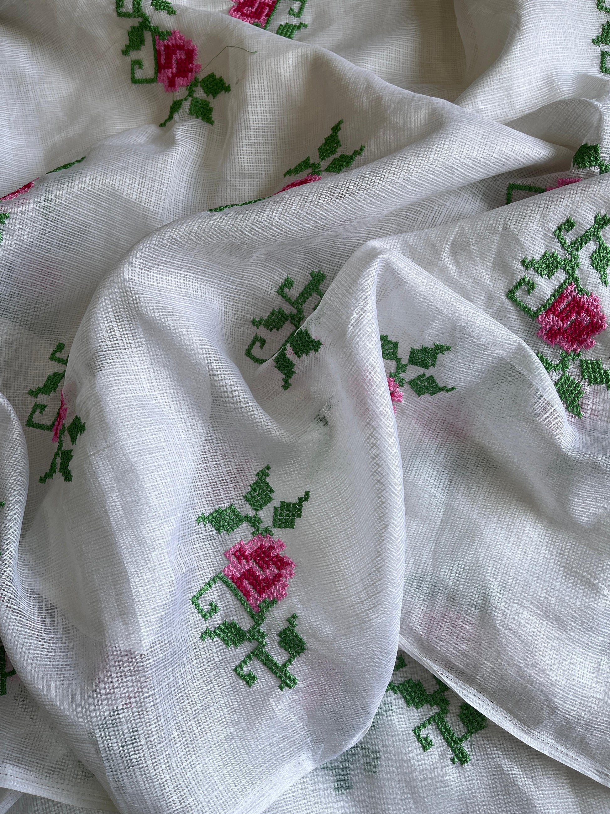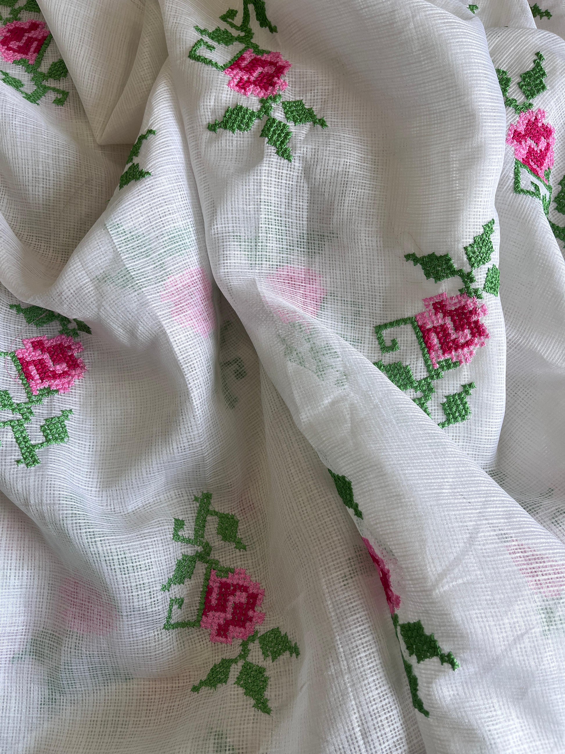 Pure Kota Dodiya saree with cross stitched embroidery work on all over the saree