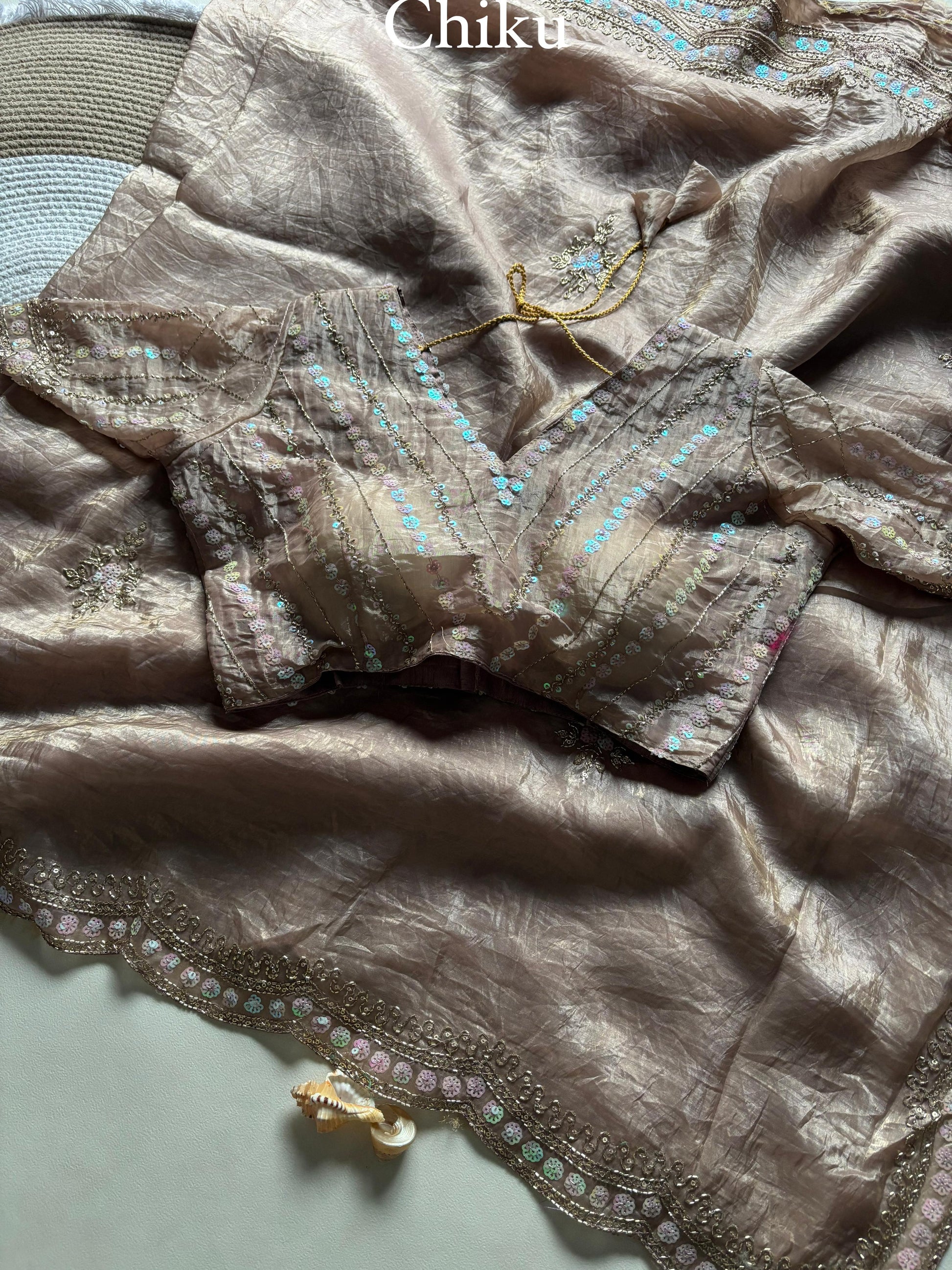 *New gold crush saree with new round siquance concept and colorfull siquance beautiful embroidery work and designer round siquance embroidery work blouse*