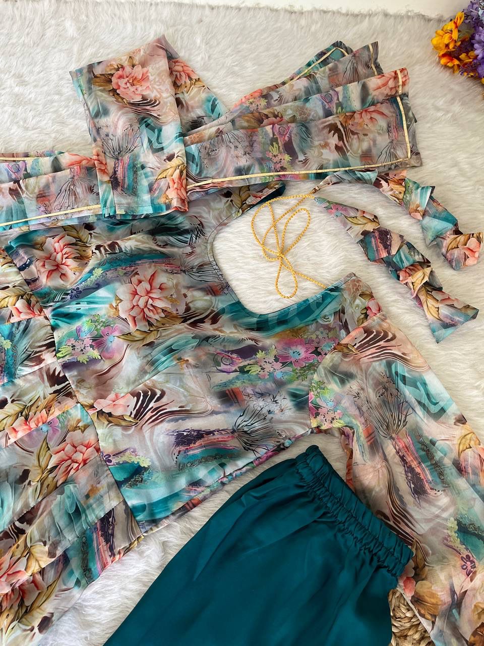 👗Dupatta : Organza Taby Silk With Digital Print , Four Side Golden Gotta Lece Broder ….