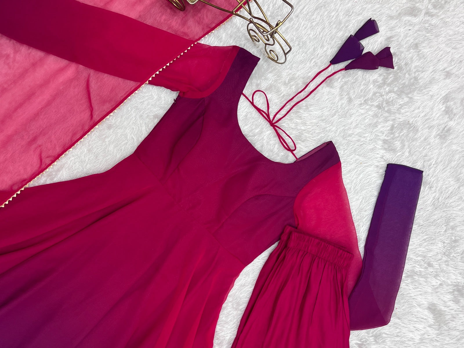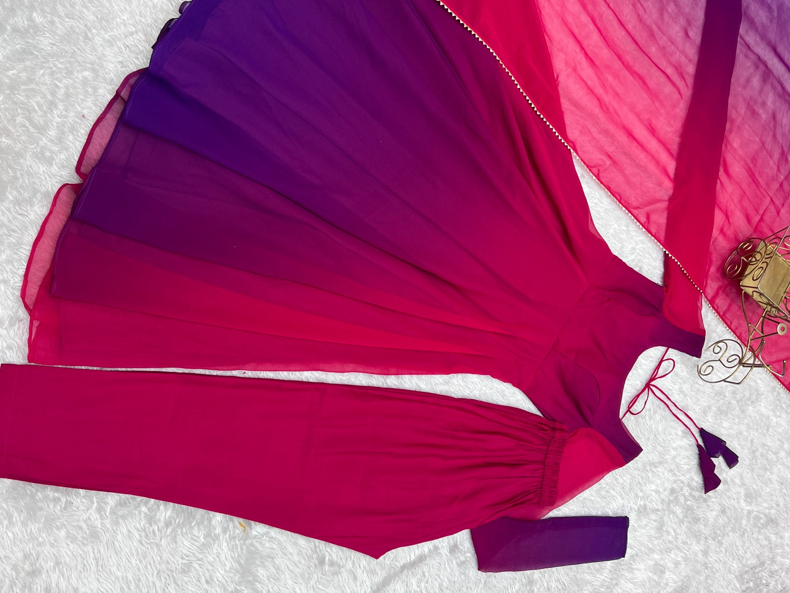 *Pure Soft Fox Georgette Most Trendy Padding Fabric Fully Flair Anarkali,with Duppta Set,pent*