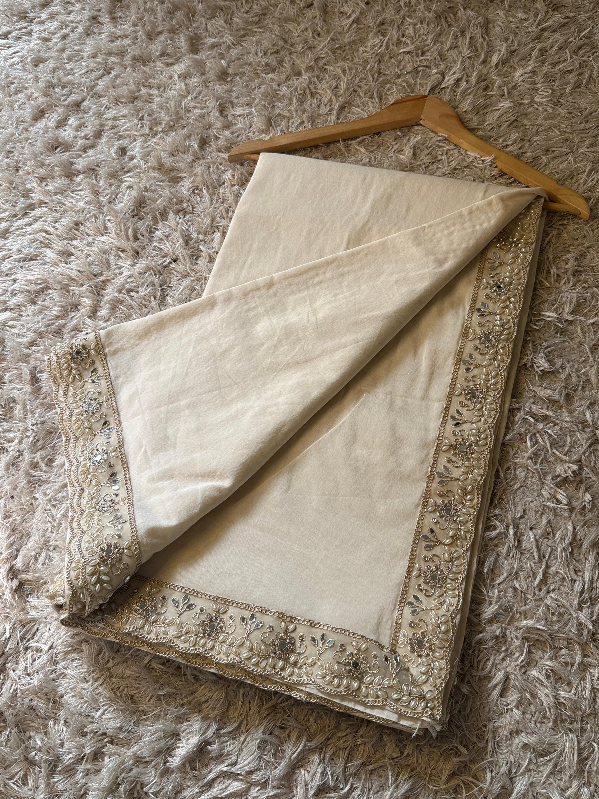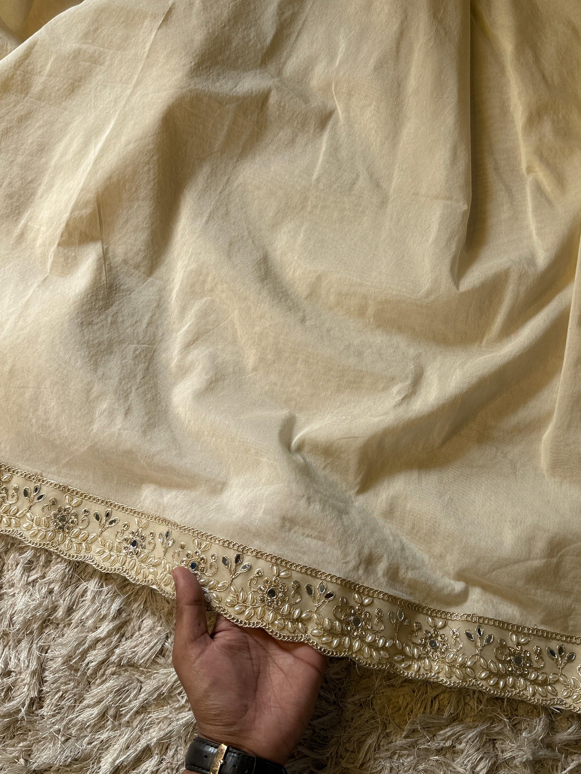 Banarasi Semi Katan Cotton Silk Saree with exclusive lace handwork!