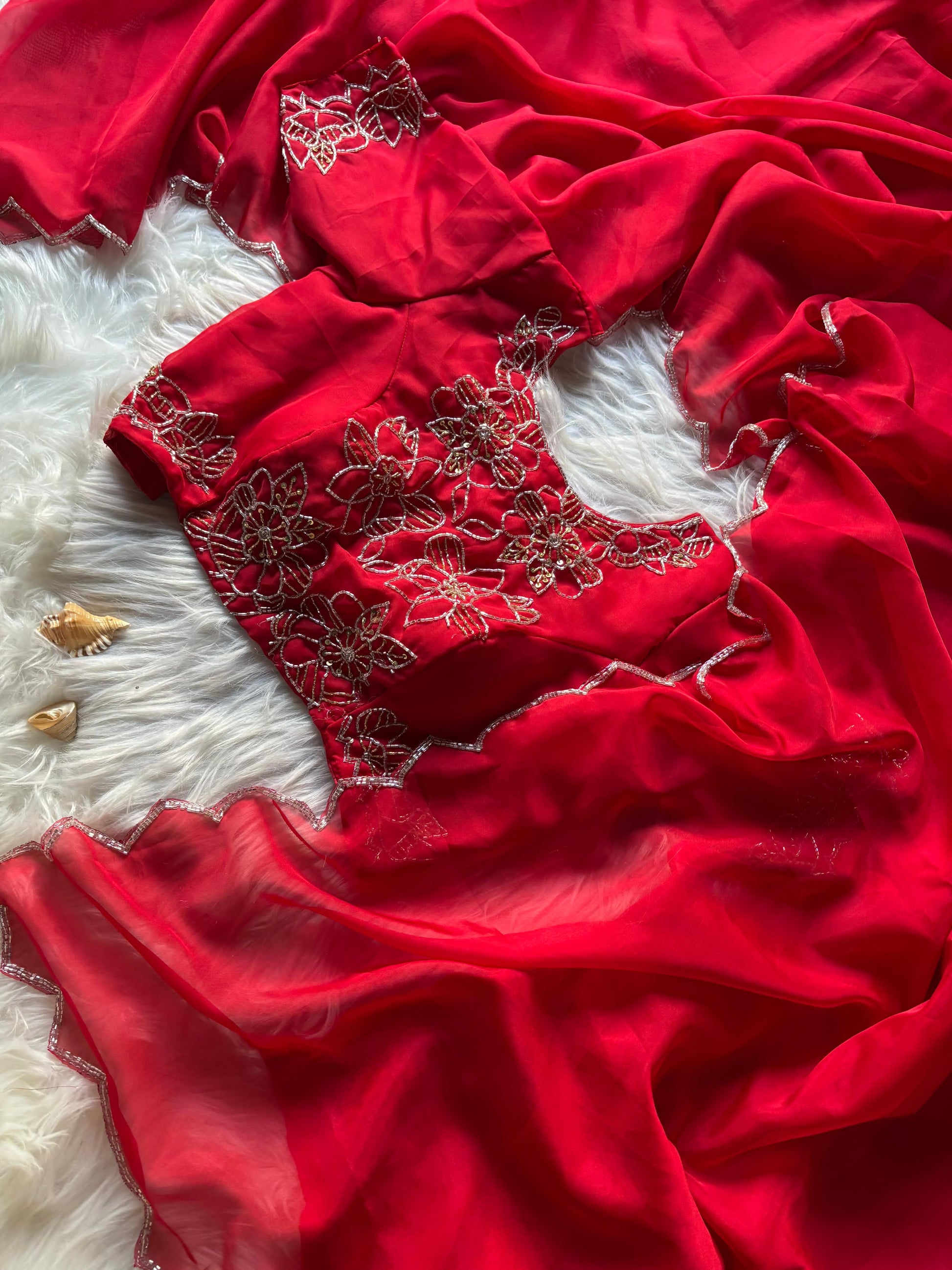 Soft Teby handowrk Saree with stitched blouse