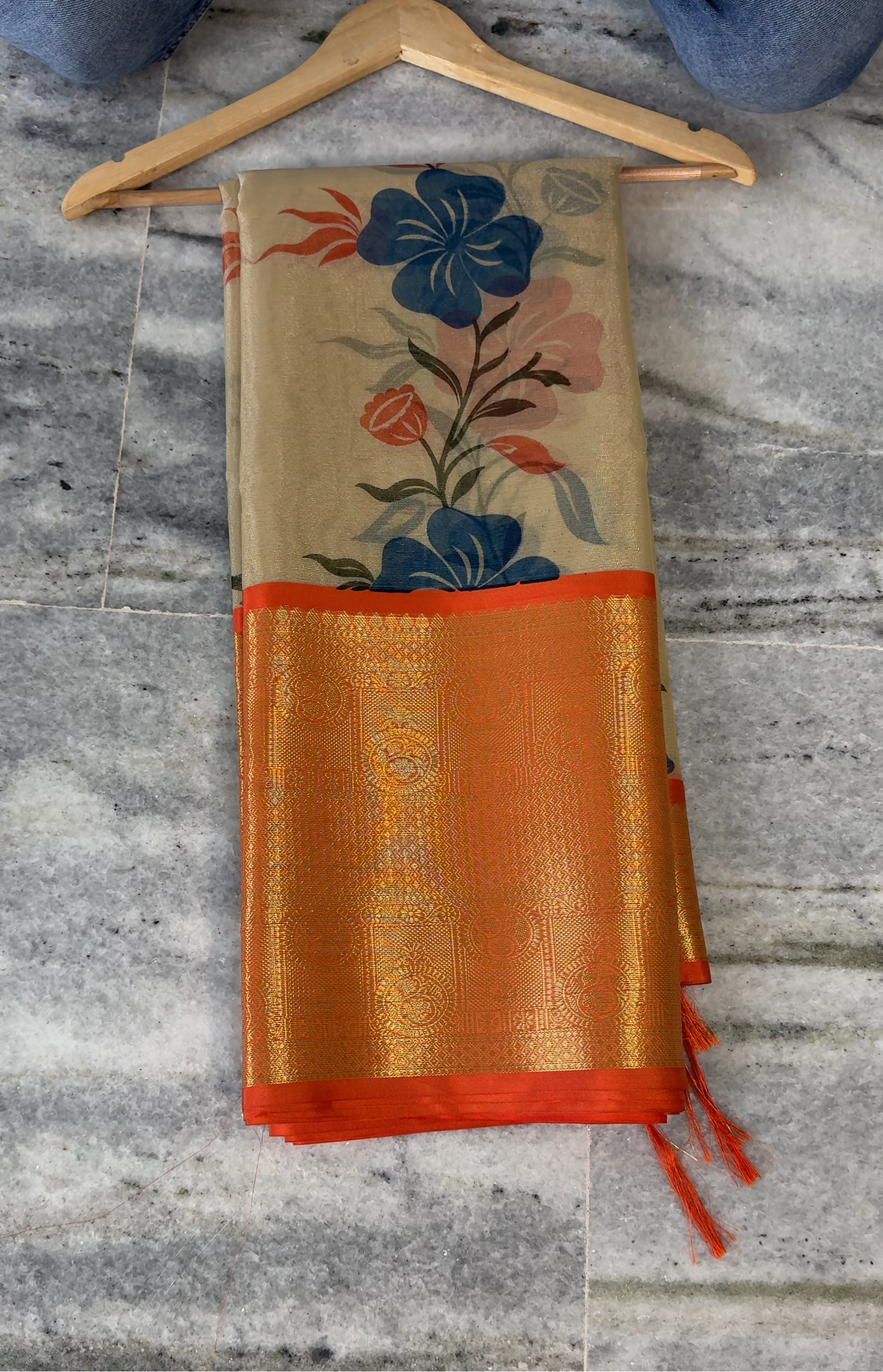 Premium soft banrasi zari tissue silk with kanchi. Borders