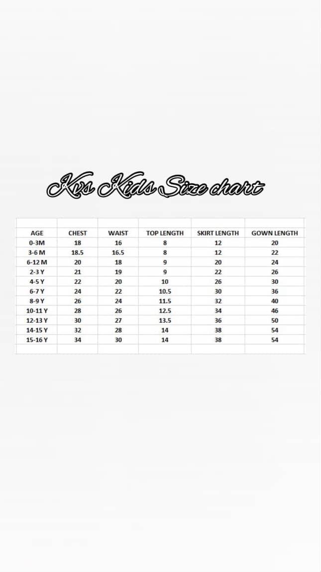 Age (Years) | Chest (inches) | Waist (inches) | Top Length (inches) |