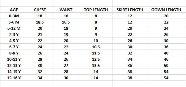 Age (Years) | Chest (inches) | Waist (inches) | Top Length (inches) |