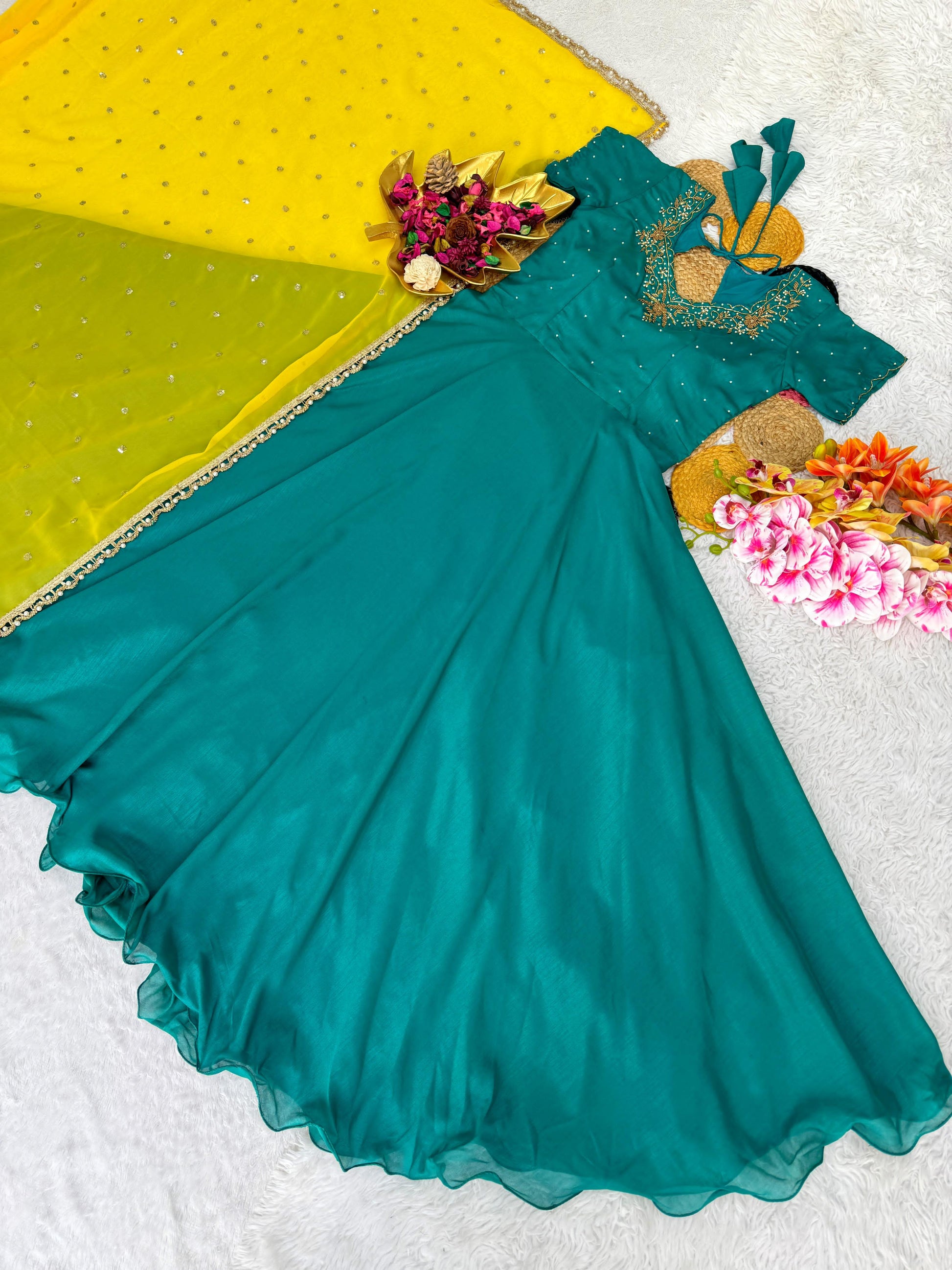 *Top Trending Diwali Collection. Beautiful Maggam Work Gown With Sequins Embroidery Dupatta. A touch of glamour and elegance to your look For Festive Season.*